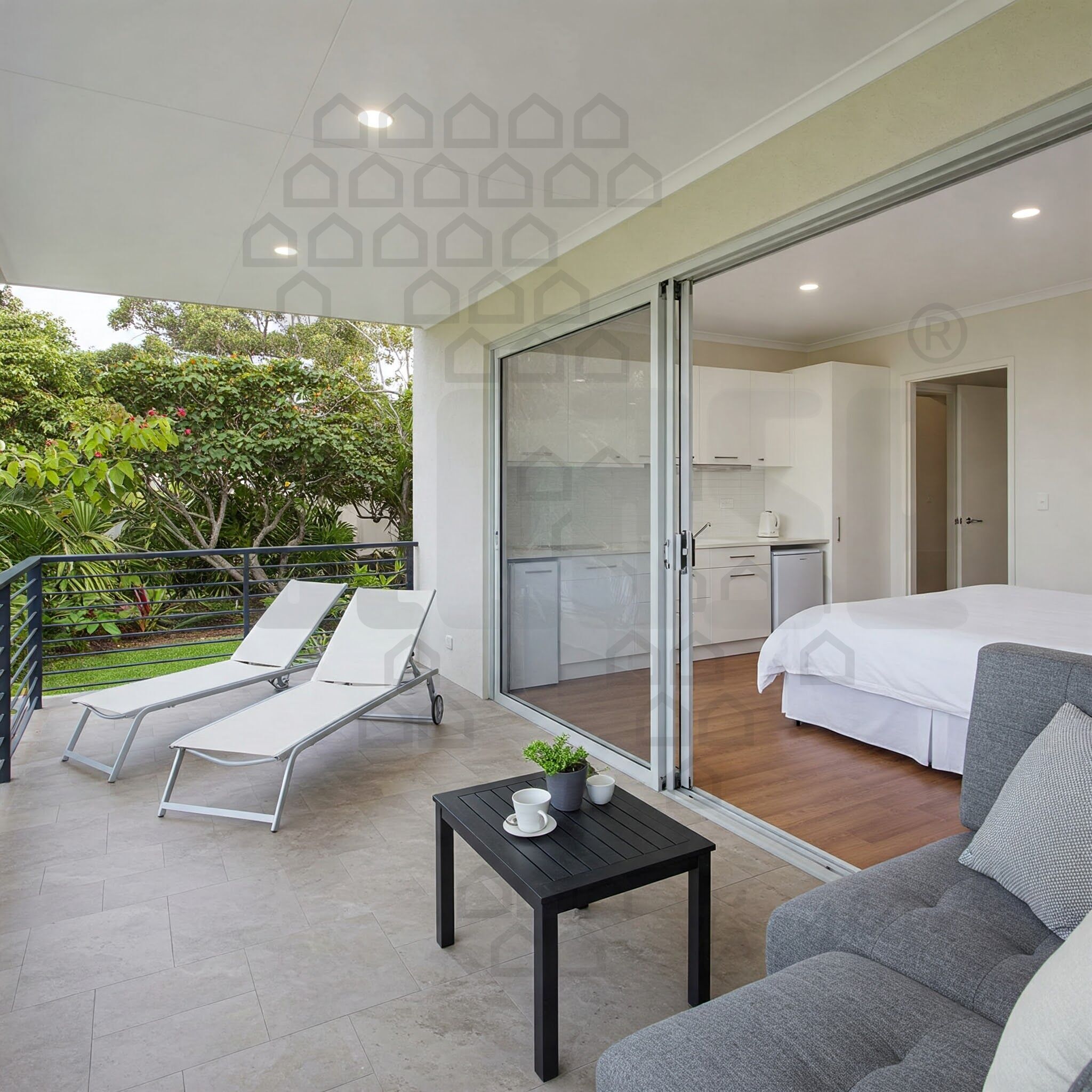 L'APPARTAMENTO E’ SITUATO A PIANO TERRA ED E' COMPOSTO DA LIVING CON ANGOLO COTTURA E ZONA NOTTE, 1 BAGNO E AMPIA VERANDA ESTERNA CON GIARDINO.