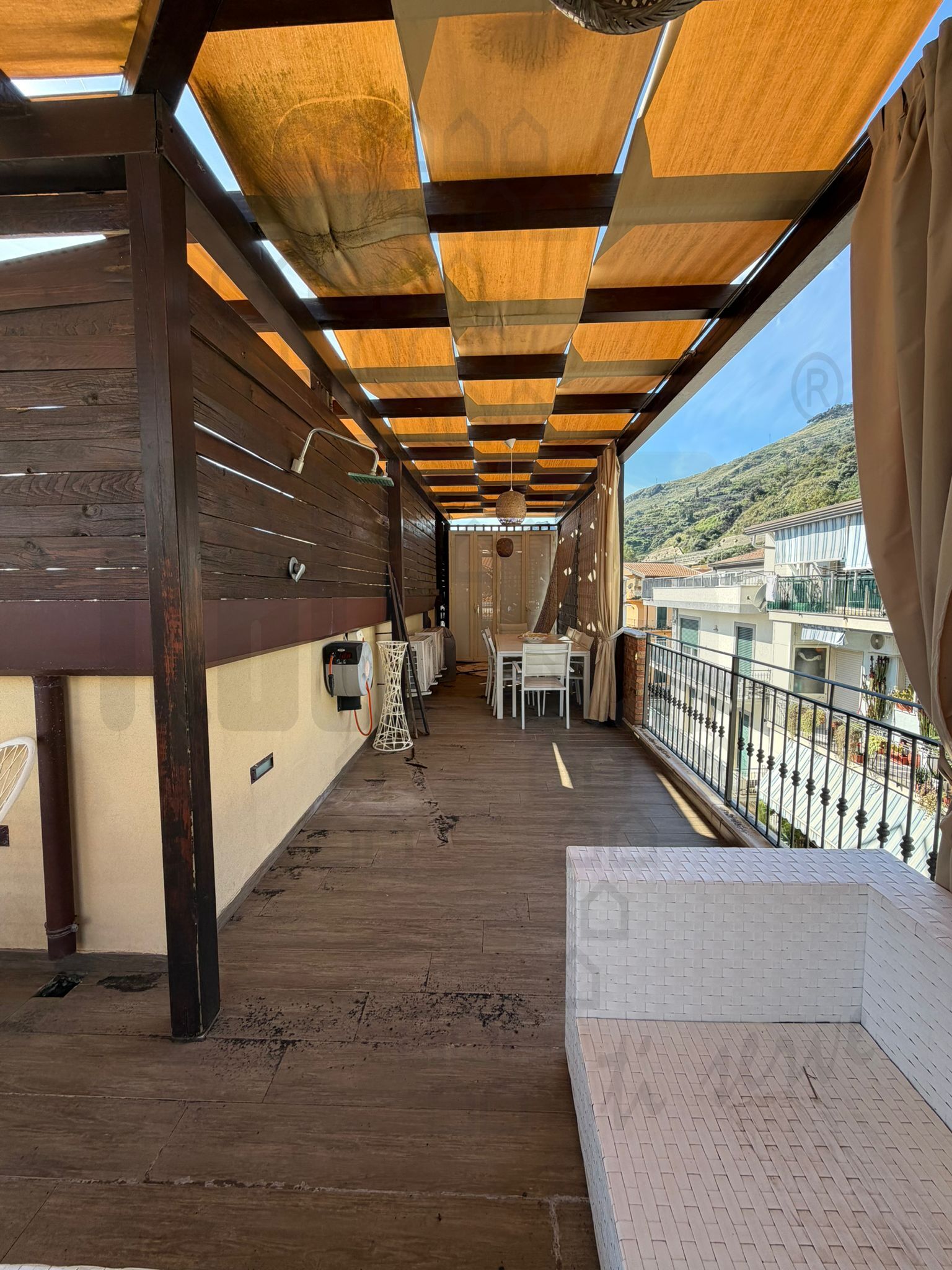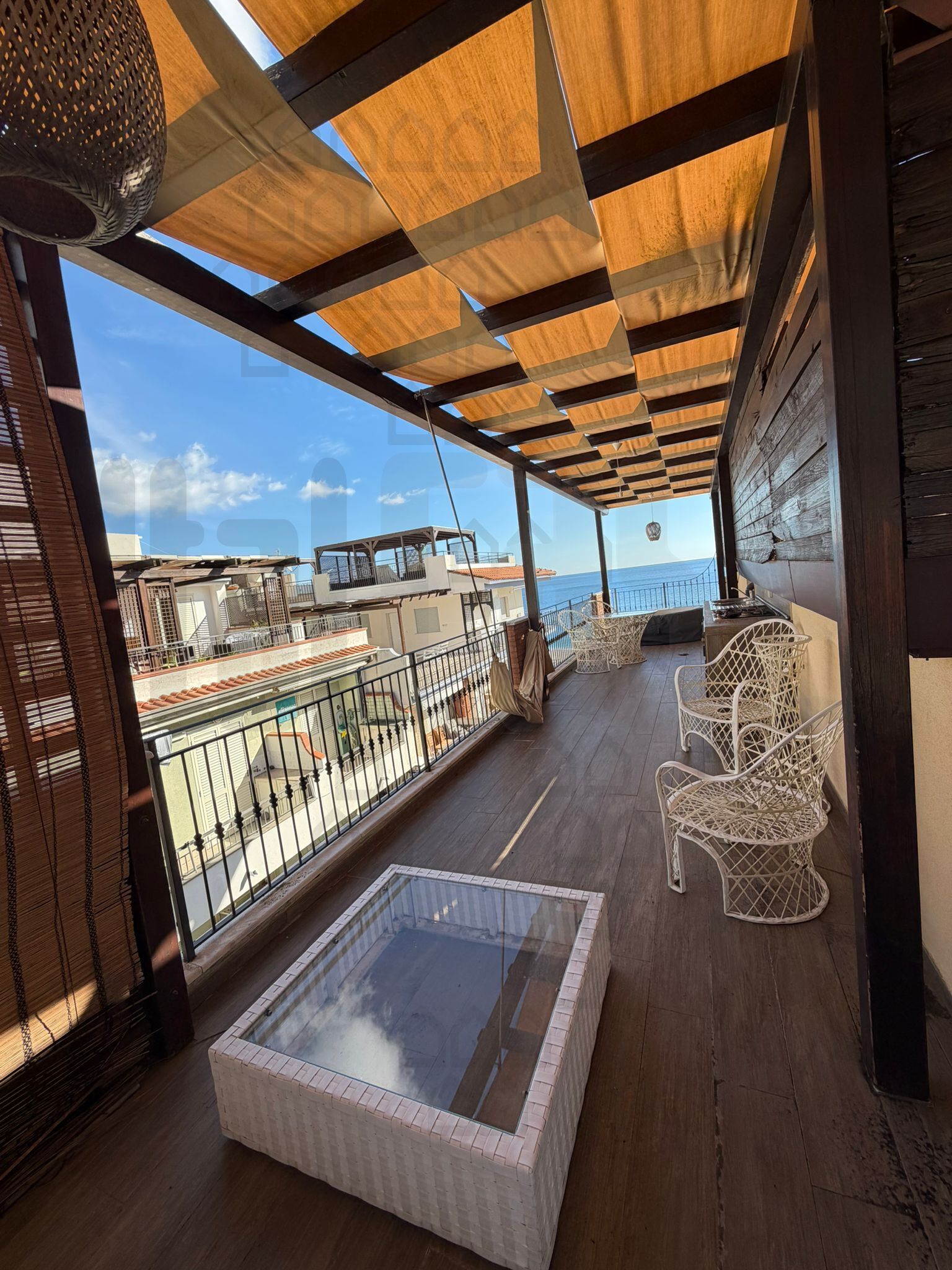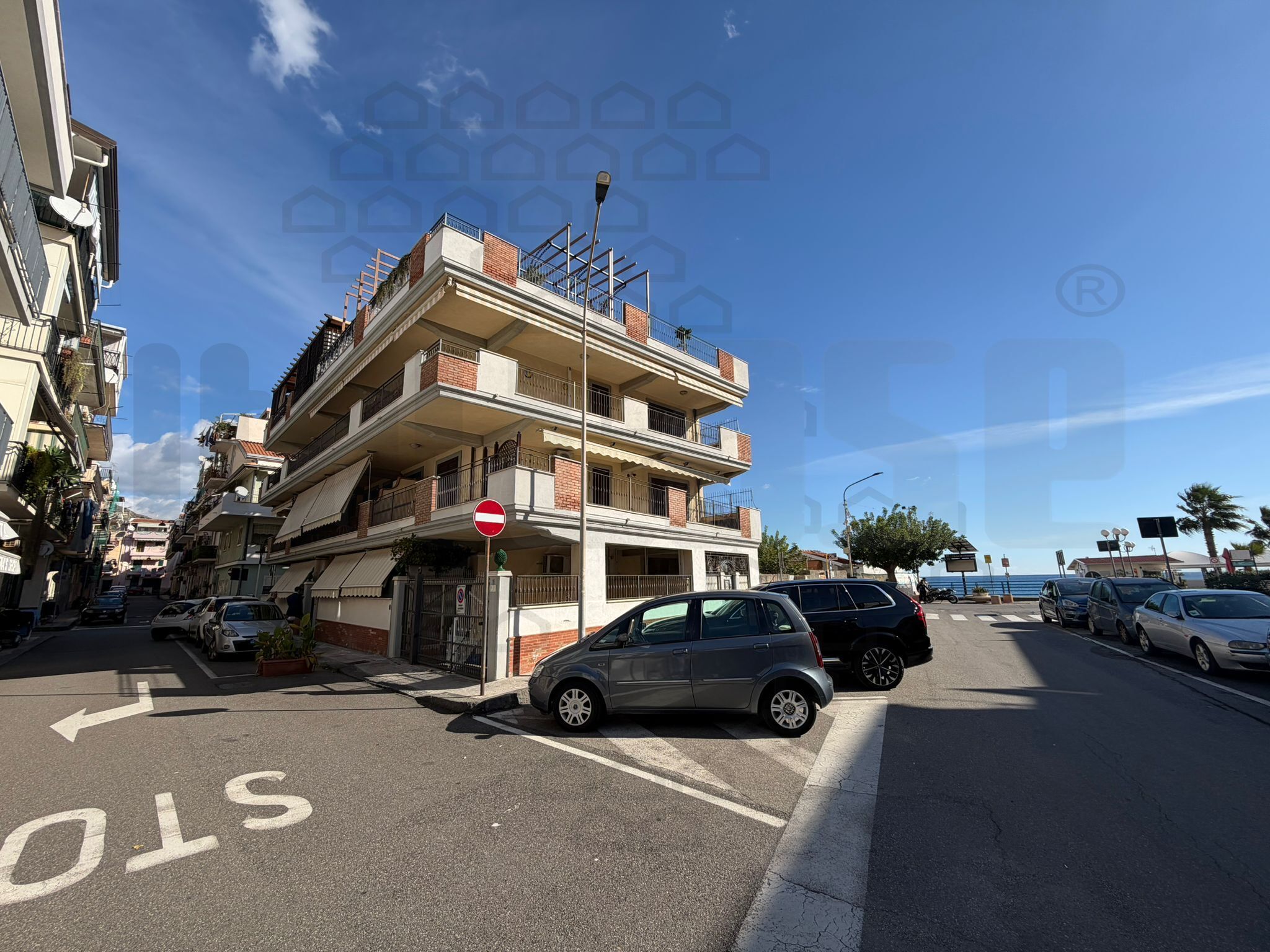 Taormina , fronte mare in complesso di recente costruzione , lussuoso attico con grande terrazzo a livello , composto da salone/cucina open Space , camera da letto con cabina armadio e wc .