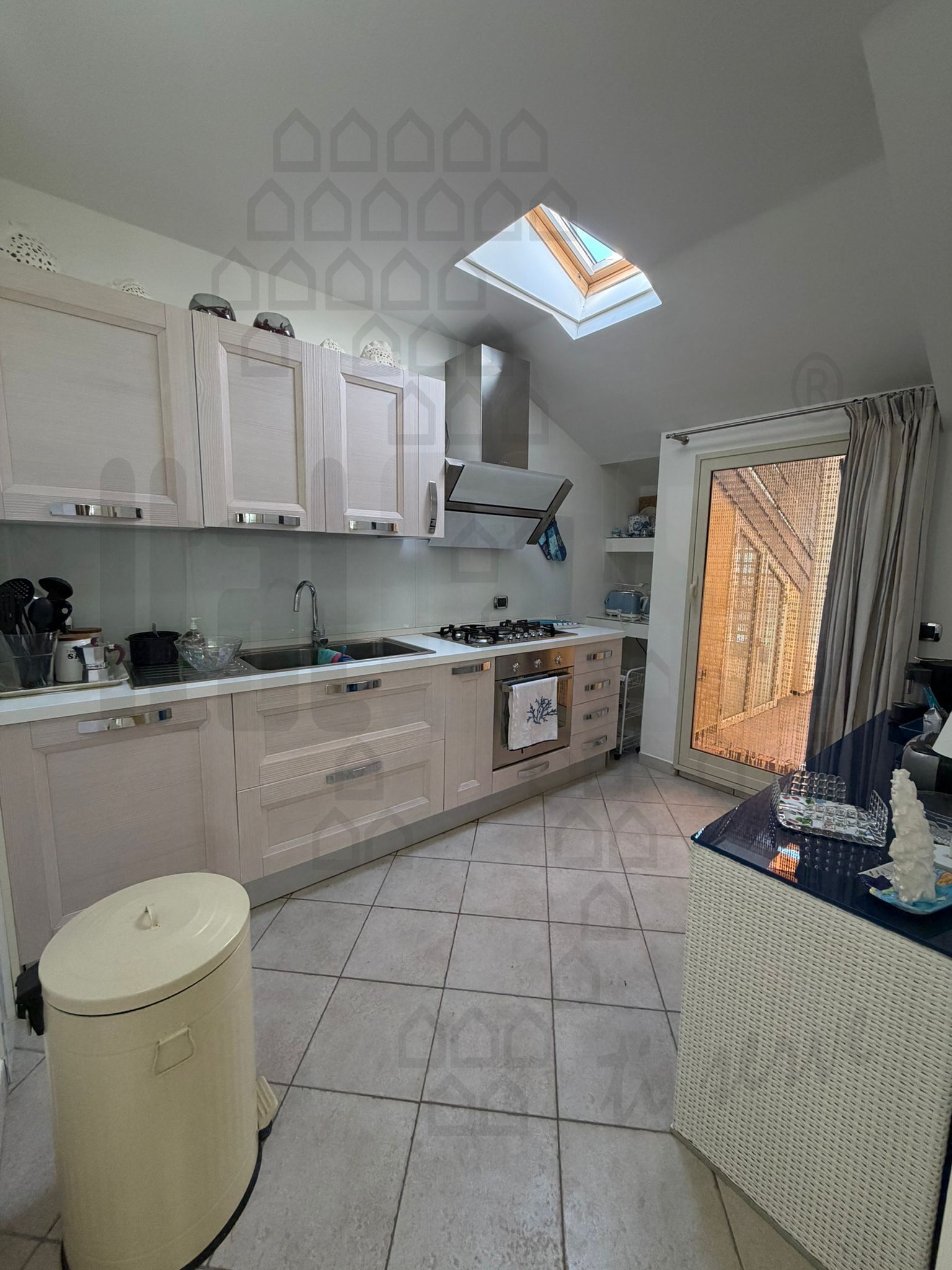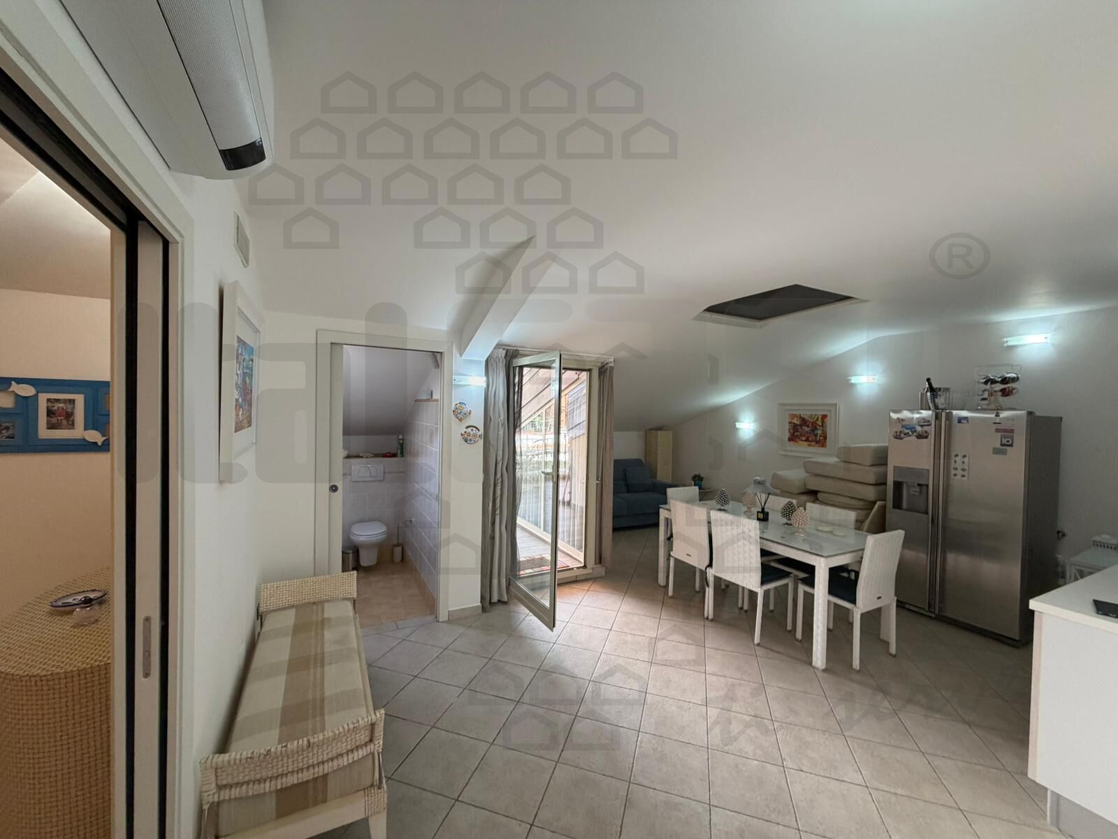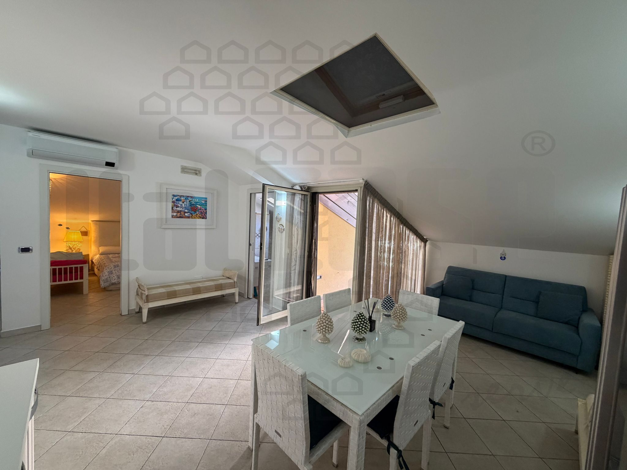 Taormina , fronte mare in complesso di recente costruzione , lussuoso attico con grande terrazzo a livello , composto da salone/cucina open Space , camera da letto con cabina armadio e wc .